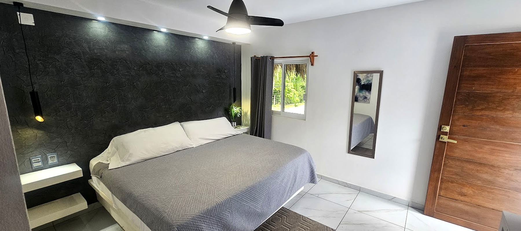 Traditional Palapa Bungalow privately located good size room with its own bath. Offers a full size bed, mountain view, very clean.